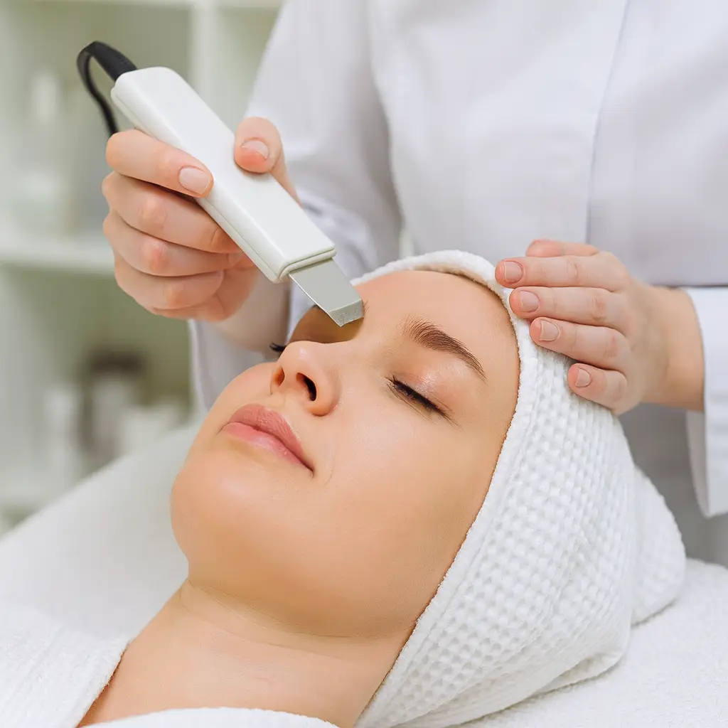 A sonic exfoliation technique is used to lift away dead skin cells, blackheads, and oil build-up. This painless process helps to unclog pores, smooth texture, and stimulate natural cell renewal — ideal for acne-prone or congested skin.
